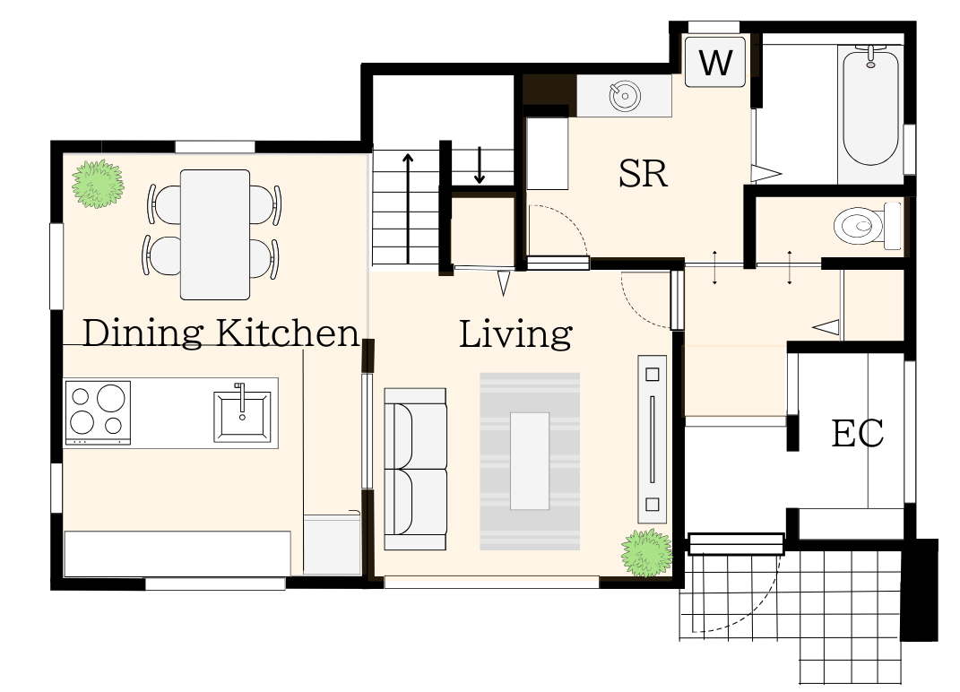 周辺の豊かな環境に溶け込んだ子育て世代におすすめの間取りです。