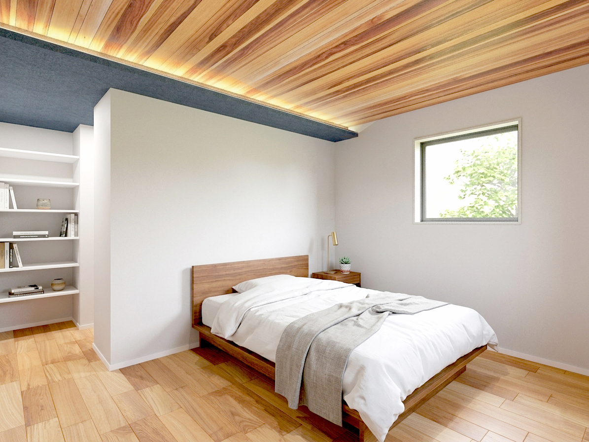キッチンと主寝室には「下がり天井と間接照明」、温かみのある照明が空間を包み込んでくれます。
