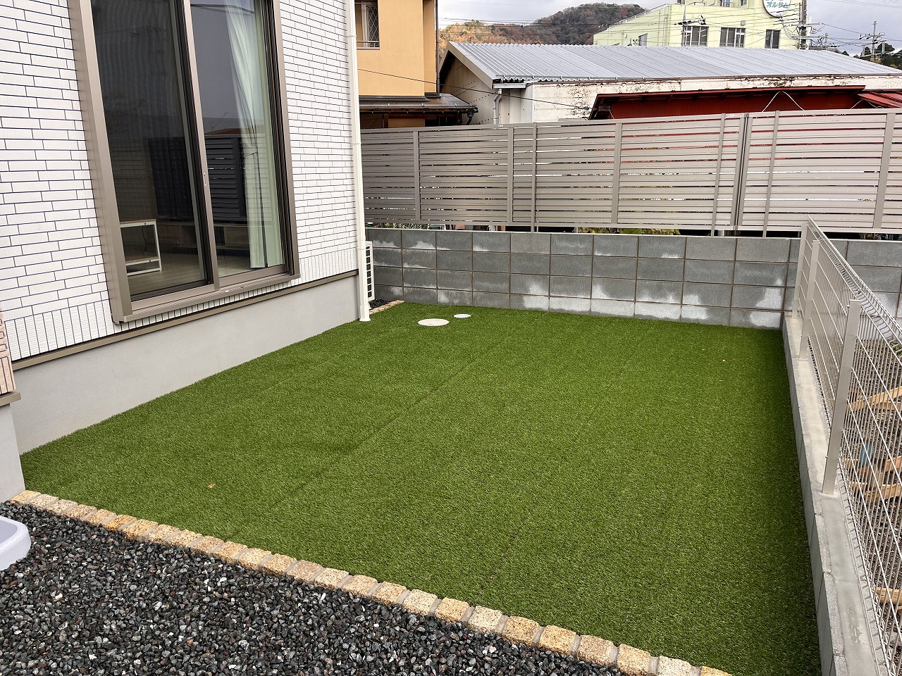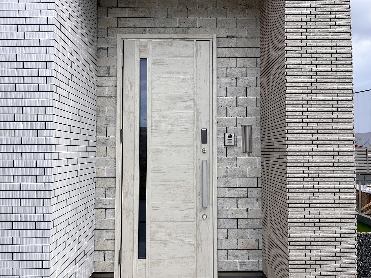 3色のタイルを使い明るく軽やかで柔らかな色合いのタイル住宅